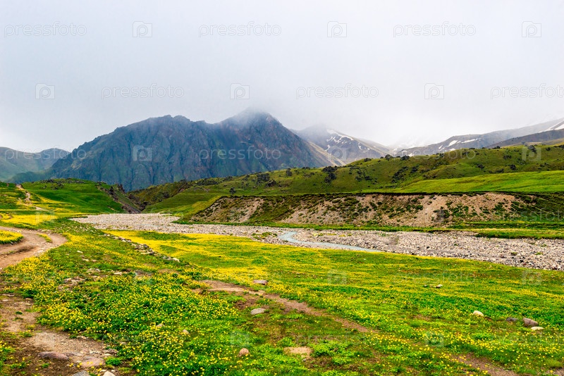 Живописный пейзаж с горной рекой в долине реки Эмануэль. Кавказ