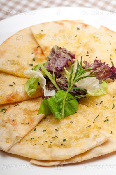 Чесночная пицца из хлеба пита с салатом