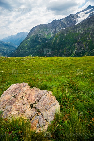 Живописный горный вид со скалами и горами. Северный Кавказ