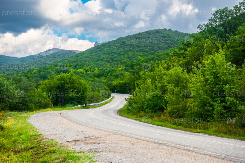 S-образный изгиб горной дороги в горной местности Южного берега Крыма