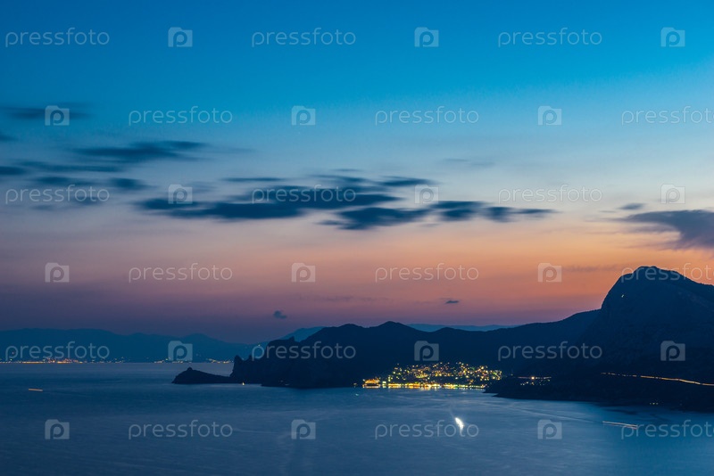 Живописный вечерний вид на гору Сокол и южное побережье Крымского полуострова. Россия