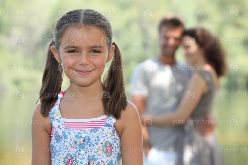 Девочка и ее родители в парке