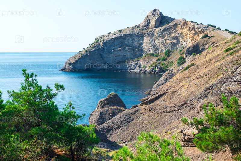 Живописный морской пейзаж с прекрасным видом на мыс Капчик и Черное море. Крымский полуостров. Россия