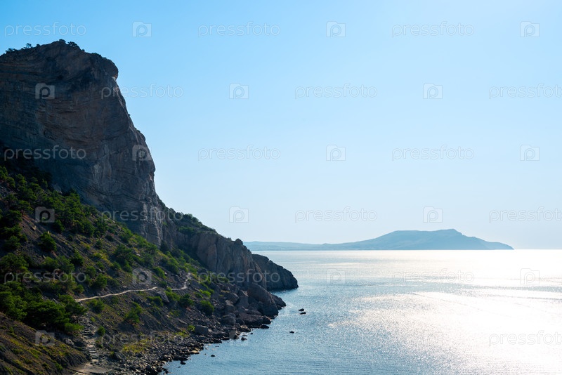 Живописный морской пейзаж с тропы Голицына у подножия горы Коба-Кая. Крымский полуостров. Россия