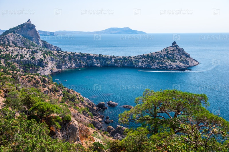 Живописный морской пейзаж с прекрасным видом на мыс Капчик и Черное море. Крымский полуостров. Россия