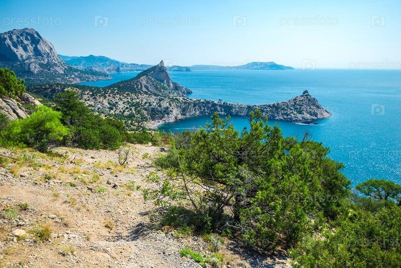 Живописный морской пейзаж с прекрасным видом на мыс Капчик и Черное море. Крымский полуостров. Россия