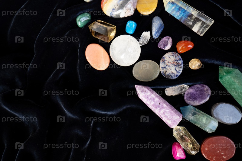 Драгоценные камни минералы камни и обелиски на бархатном фоне. Колдовство, фитотерапия и целительство, магия исцеления камень для ритуала Рейки кристалл, колдовство, духовная эзотерическая практика