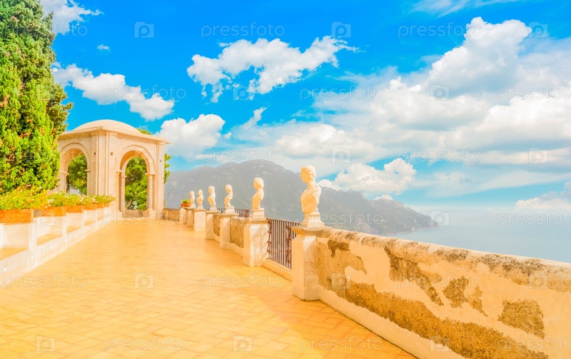 Парк в деревне Равелло над морем, побережье Амальфи в Италии