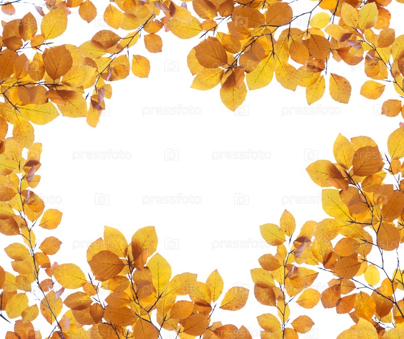 Падают желтые листья с солнечными лучами на белом