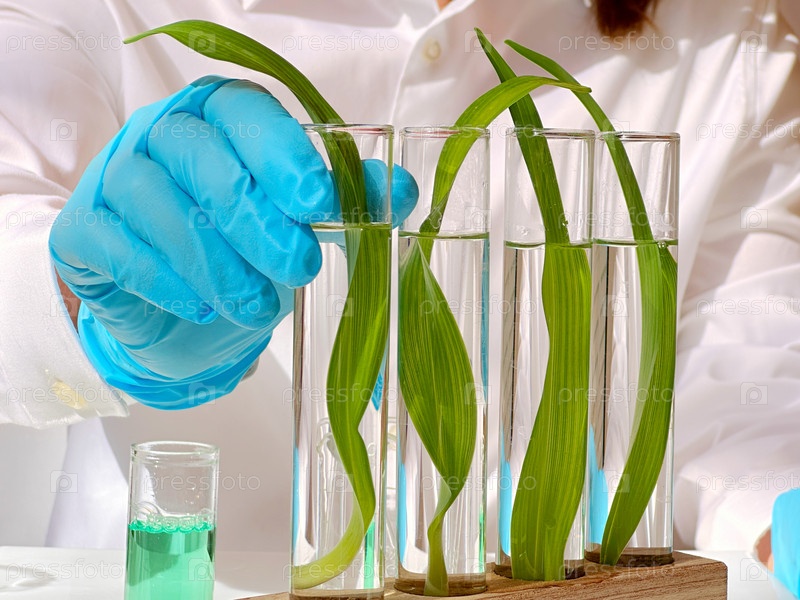 Концепция науки и природы, зеленая лаборатория с исследователем, осматривающим пробирки