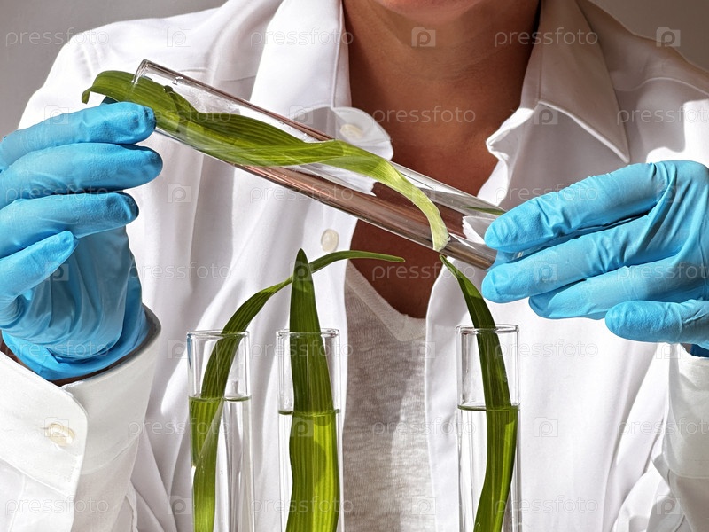 Концепция науки и природы, зеленая лаборатория с исследователем, осматривающим пробирки