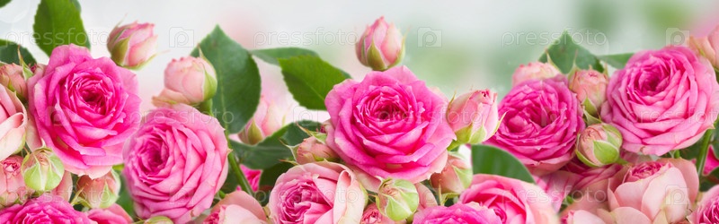 Бордюр из свежих розовых роз крупным планом
