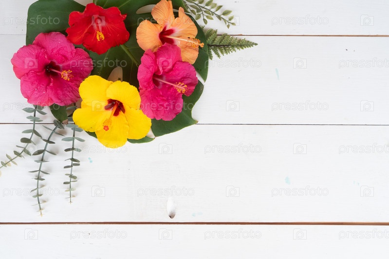 Тропические цветы и листья, летний отпускной фон