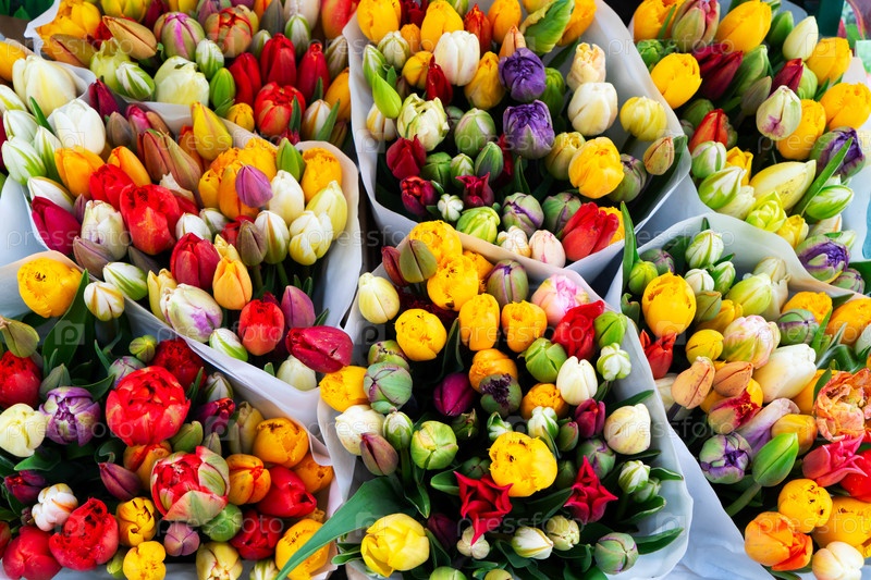 Разноцветные тюльпаны в продаже