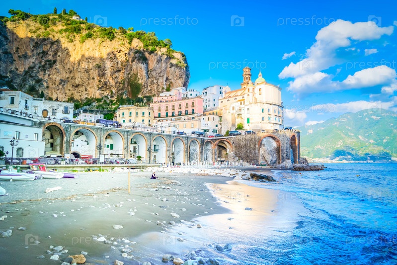 Летнее побережье Амальфи и Тирренское море с лодками, Италия