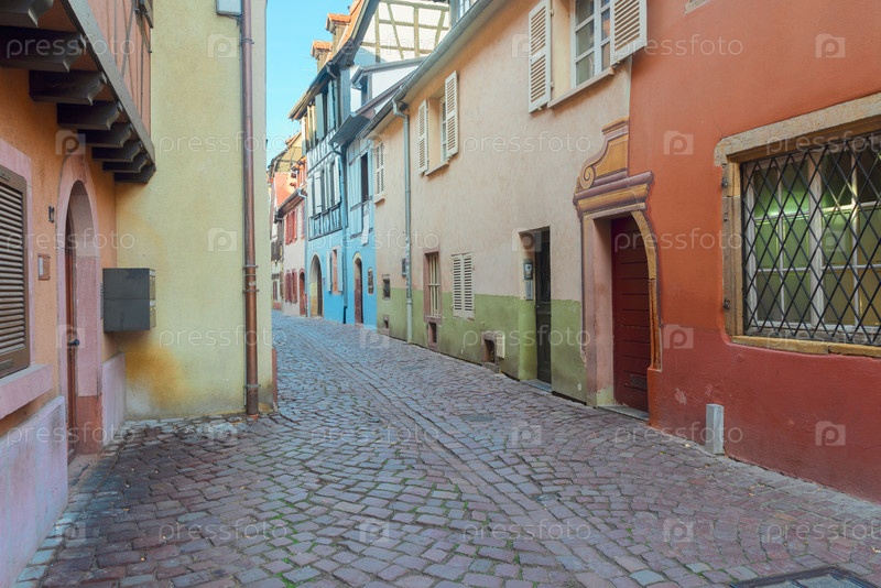 Пешеходная улица старого города Кольмар, самый известный город Эльзаса, Франция, в ретро-тонах