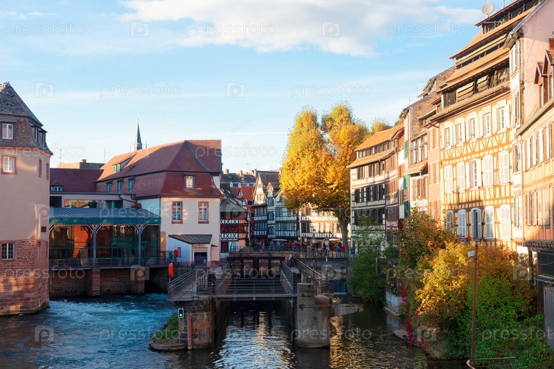 Канал и ворота Пти-Франс средневековый район Страсбурга, Франция