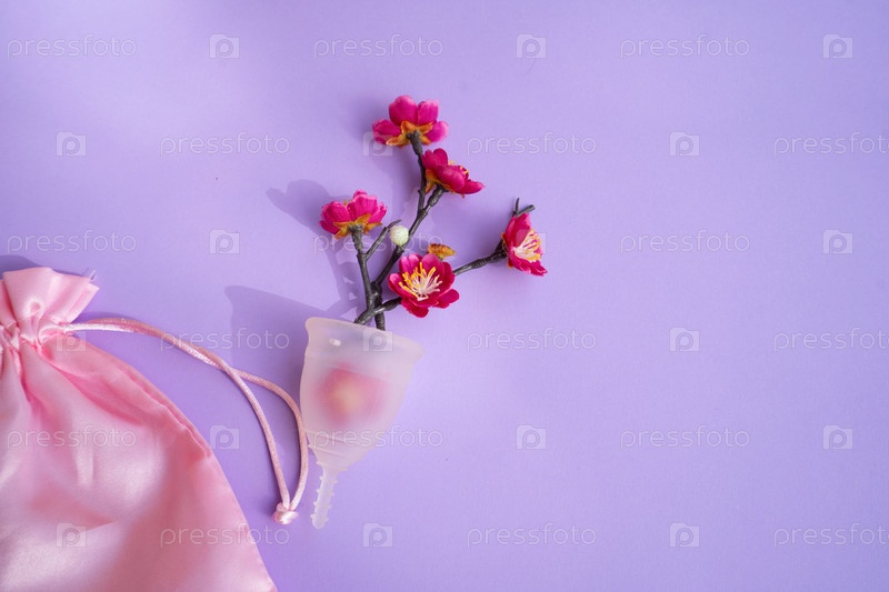 Менструальная чаша на фиолетовом фоне, экологически чистое и безотходное решение
