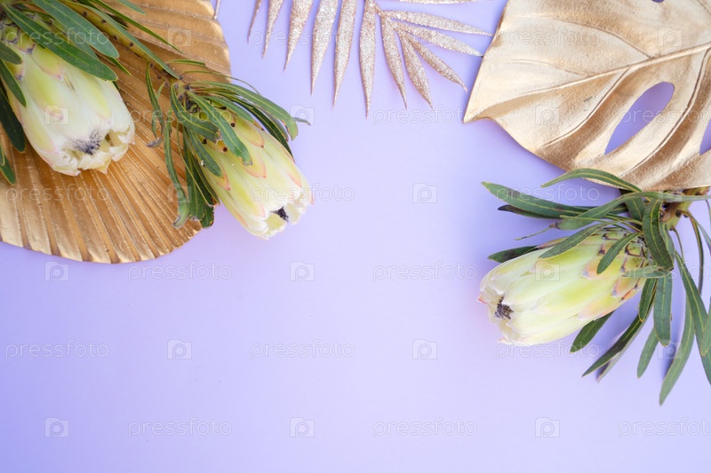 Тропические листья и цветы на зеленом фоне, летний фон с местом для копирования