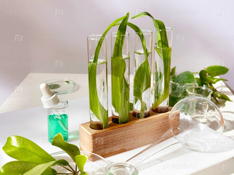 Концепция науки и природы, зеленая лаборатория с пробирками