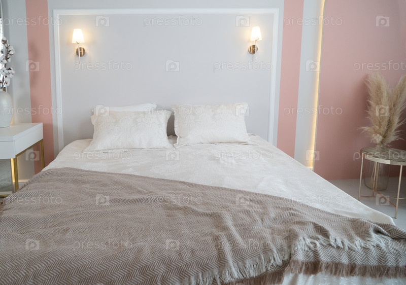 Красиво оформленная современная спальня с шикарными элементами декора и уютным, привлекательным постельным бельем