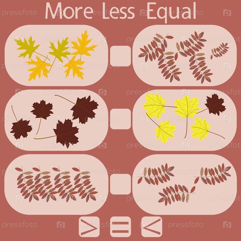 Подсчитайте осенние листья на картинке и поставьте знак больше, меньше или равно