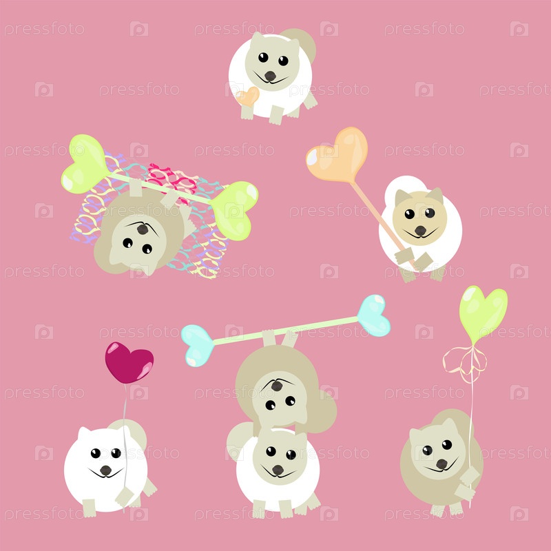 Для валентинок набор забавных щенков с воздушными шарами для поздравлений с Днем святого Валентина и днем рождения