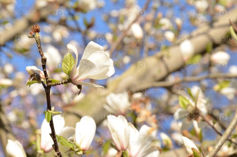 Цветение Магнолии кобус (Magnolia kobus) в Ботаническом саду Петра Великого в Санкт-Петербурге