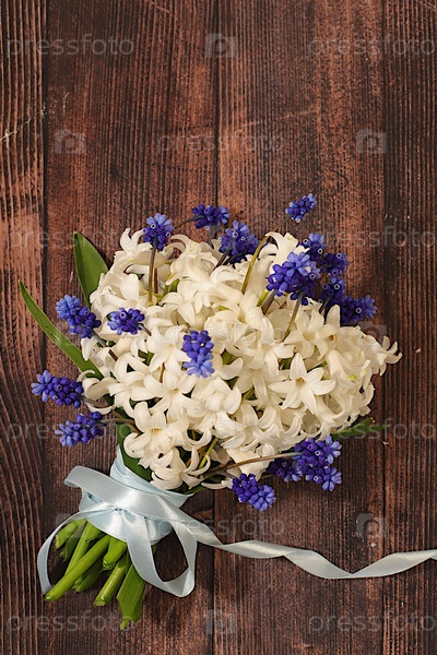 Красивый букет из белого гиацинта и мускари. Абстрактная цветочная композиция для экрана и шаблон дизайна. Весенняя поздравительная открытка, элегантная концепция красоты, подарок для любимых,