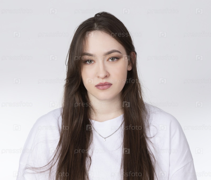 Портрет молодой красивой славянской девушки с зелеными глазами и длинными волосами