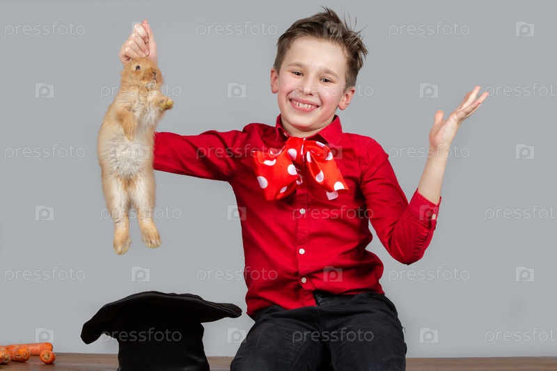 Мальчик-фокусник достает кролика из шапки