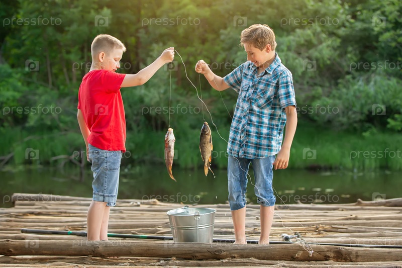 Двое сыновей моего друга, отправившегося на рыбалку, рассматривают улов