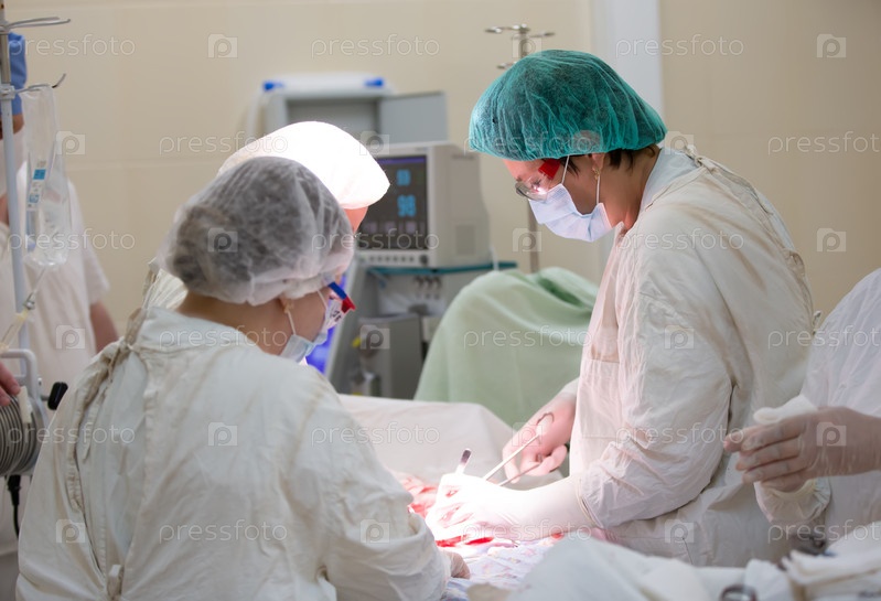 Хирургическое отделение больницы. Врачи проводят операцию на операционном столе пациенту