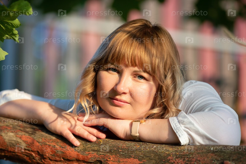 Крупный план пухлой женщины лет тридцати с голубыми глазами