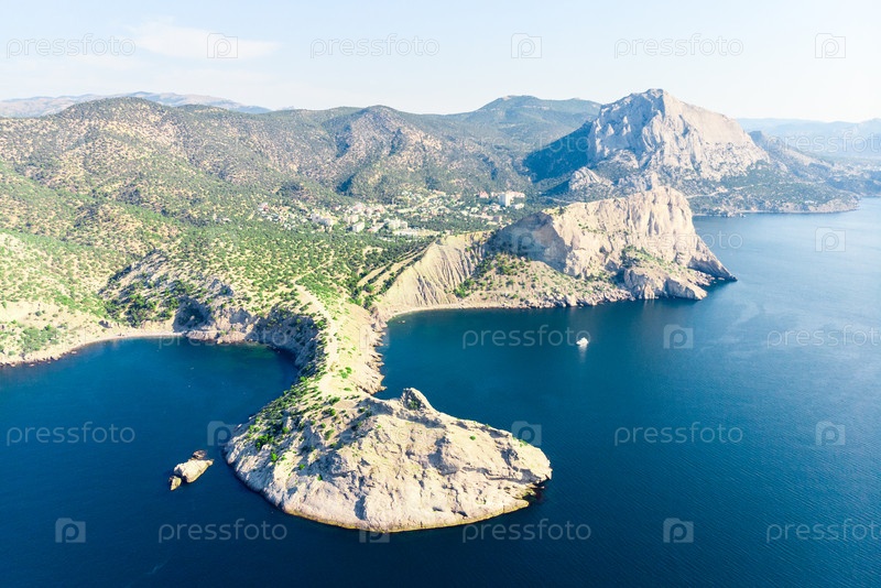 Потрясающий пейзаж, снятый с дрона с видом на мыс Капчик. Крымский полуостров. Россия
