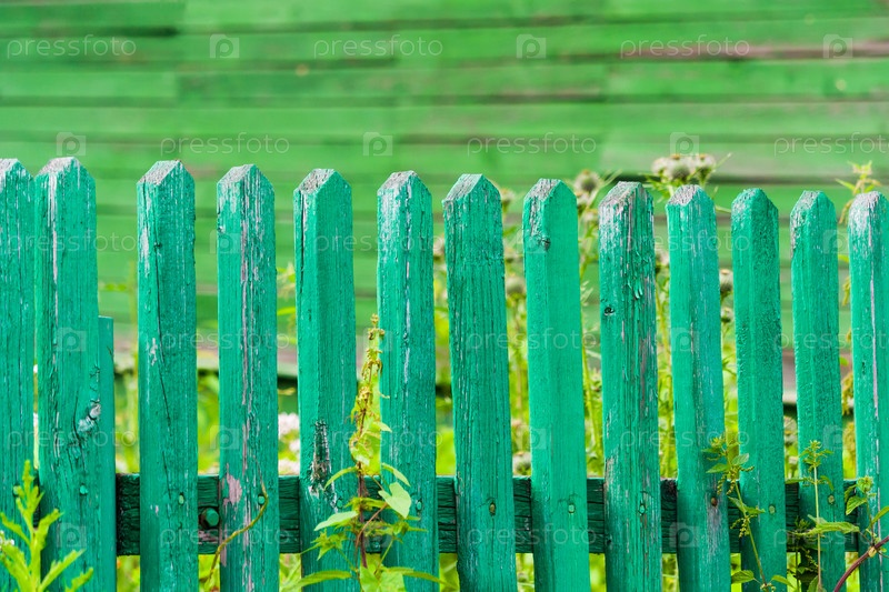 Фрагмент деревянного забора, окрашенного в зеленый цвет