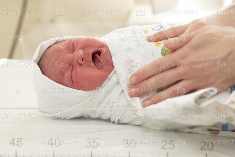 Плачущий новорожденный ребенок, завернутый в подгузник