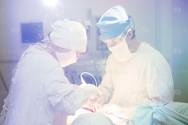 Фотография хирургов в операционной, тонированная мягким светом