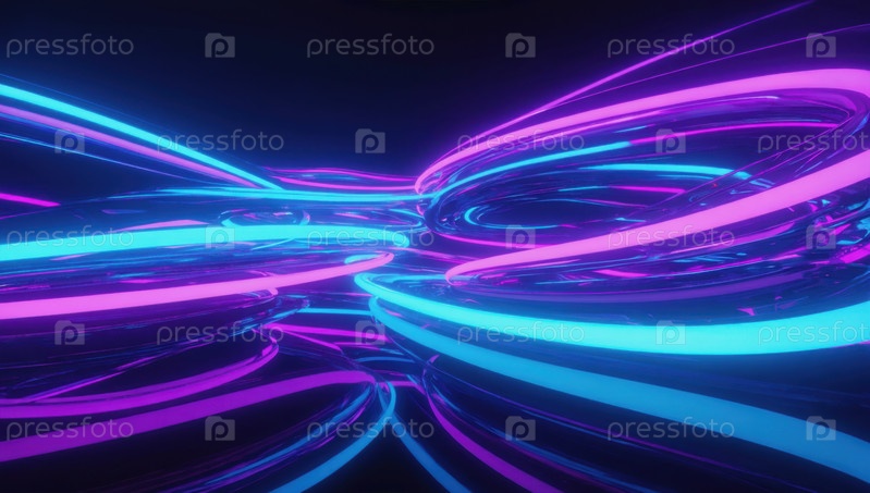 Абстрактные светящиеся неоновые фигуры, виртуальный фон киберпространства. Генеративный ИИ