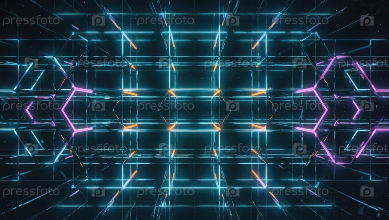Абстрактные светящиеся неоновые фигуры, виртуальный фон киберпространства. Генеративный ИИ