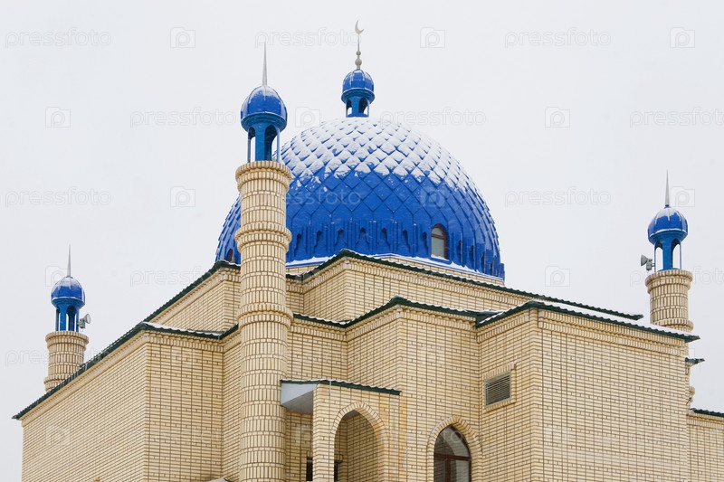 Красивая мусульманская мечеть в синем небе и траве. Высококачественное фото