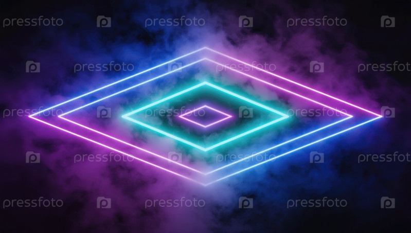 Абстрактные светящиеся неоновые фигуры, виртуальный фон киберпространства. Генеративный ИИ