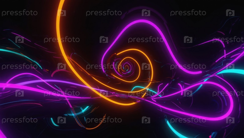 Абстрактные светящиеся неоновые фигуры, виртуальный фон киберпространства. Генеративный ИИ