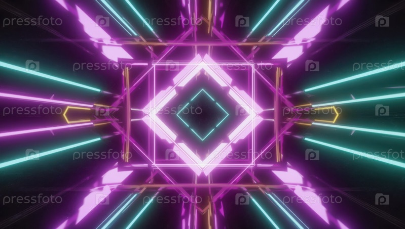 Абстрактные светящиеся неоновые фигуры, виртуальный фон киберпространства. Генеративный ИИ