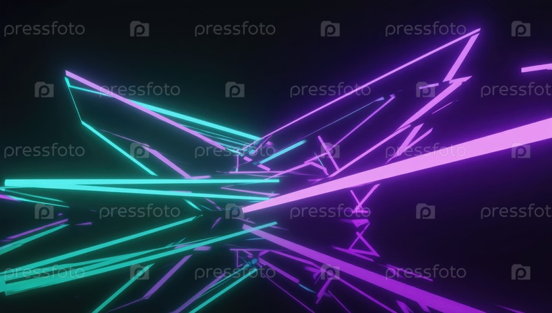 Абстрактные светящиеся неоновые фигуры, виртуальный фон киберпространства. Генеративный ИИ