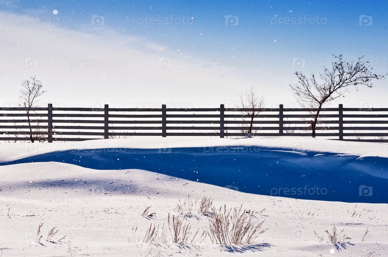 Красивый зимний ландшафтный парк. Белый снег, голубое небо. Туризм, хобби