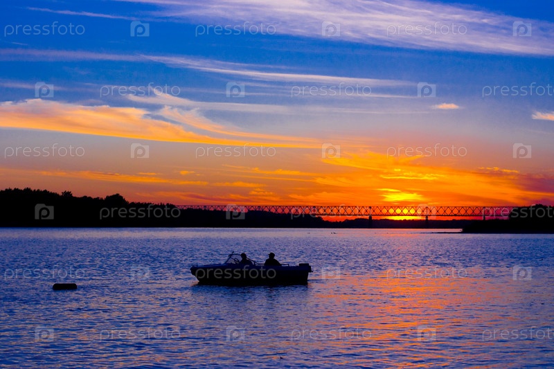 Красивый ландшафтный парк. Лодка на синей реке и шезлонг. Туризм, хобби