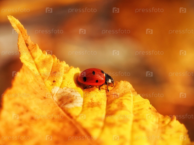 Божья коровка на желтом осеннем листе