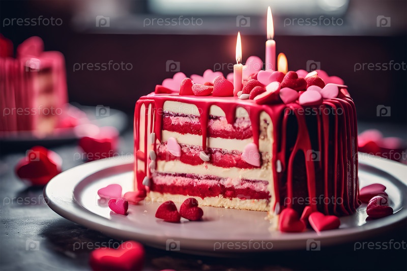 Розовый слоеный торт с двумя свечками на день Святого Валентина или день рождения