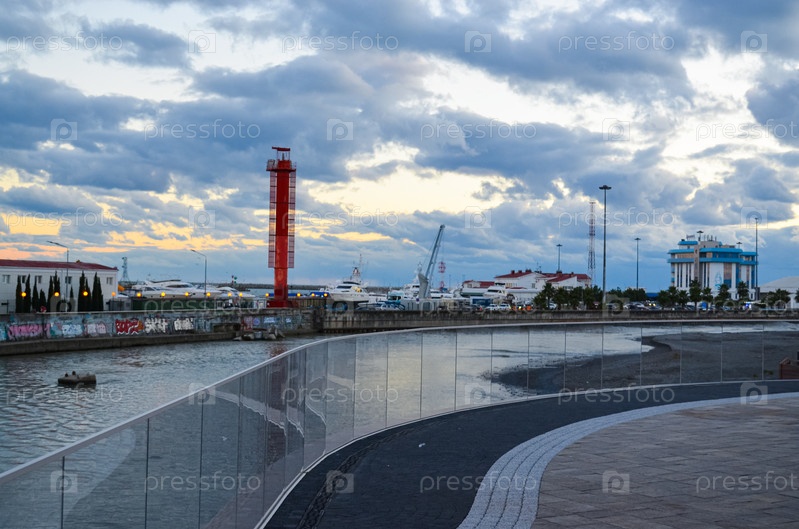 Россия, Краснодарский край, Сочи. Ноябрь 2024. Река Сочи. Вид на морской порт с новой набережной Ривьера